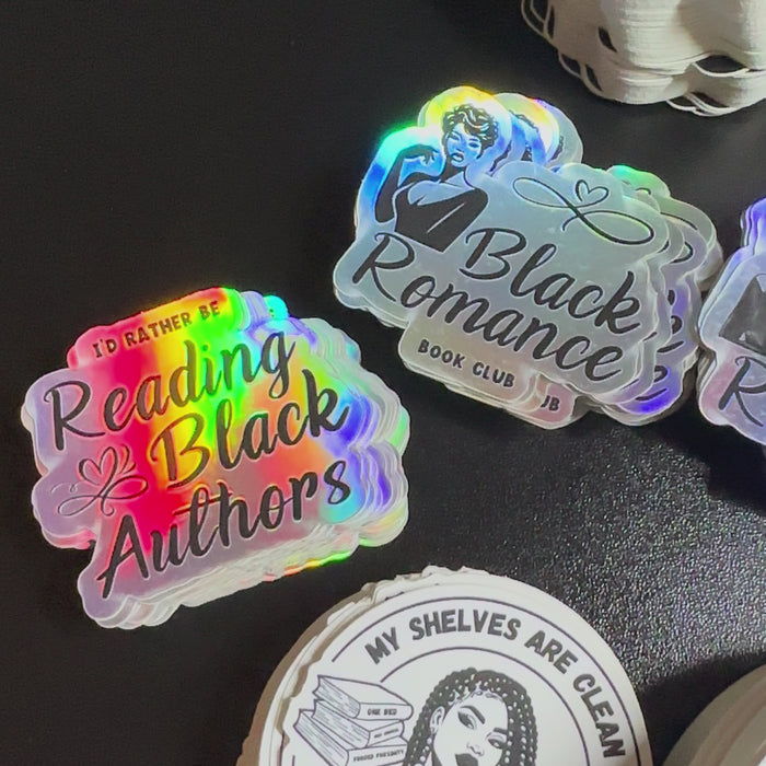 This black girl reads variety sticker bundle is designed to celebrate black girlhood within the bookish space. Bundle includes 10 die-cut stickers. Some have a glossy finish, some have a matte finish, and some are holographic. The sticker sizes range from approximately 2x2 (inches) to 3x3 (inches).