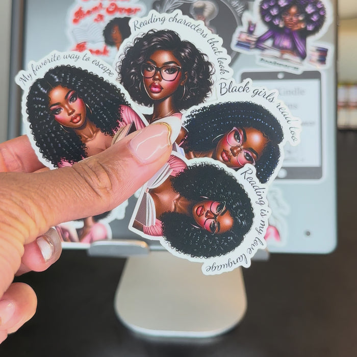 4 Piece Black Girls Reading Sticker Set