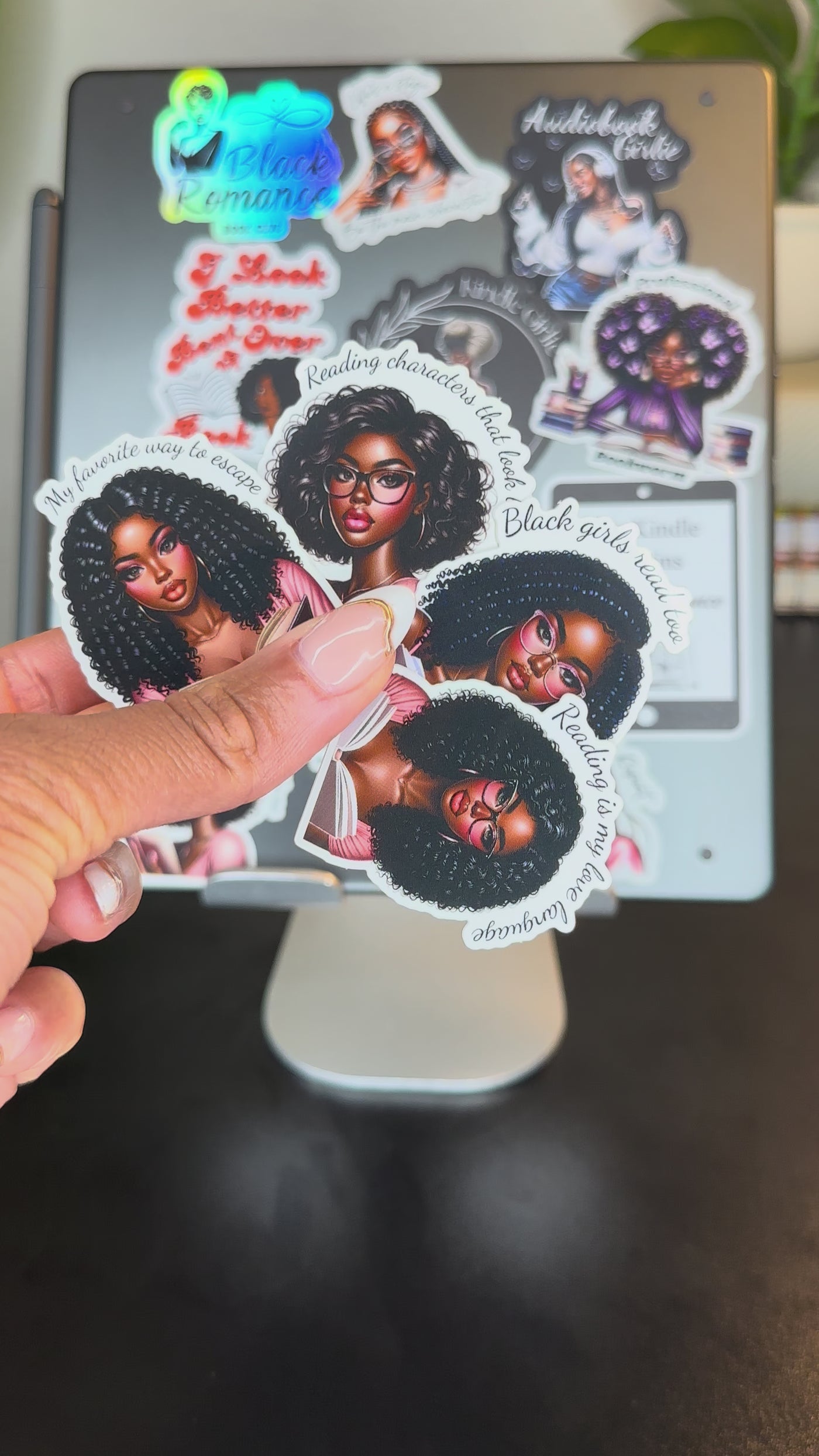 These eye-catching black girl sticker set features vibrant, glossy-finish die-cut stickers, perfect for personalizing your tablet, laptop, or other belongings.